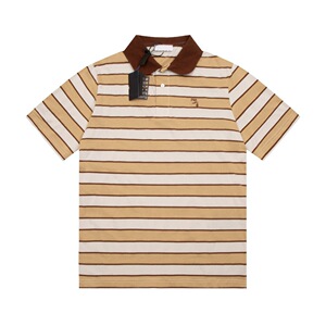 クロスボーダー正確版2025春新作P家刺繍アルファベットpoloシャツストライプ折り襟半袖上着男女