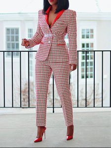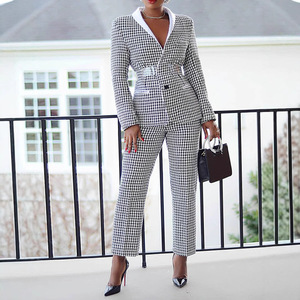 現物2025国境を越えた欧米の婦人服の格子通勤スーツの長袖スーツのズボンの2セット