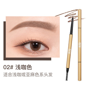 麦欧麗繊細小金箸双頭眉筆回転防止汗深い茶色がぼやけにくい化粧眉毛ペン