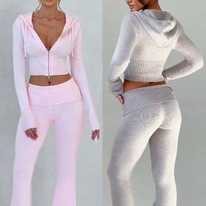 欧米のクロスボーダー2025春の新型純色ファッション修身ショートタイプの帽子と上着のカジュアルパンツ2点セットの女性