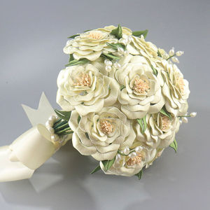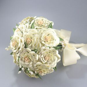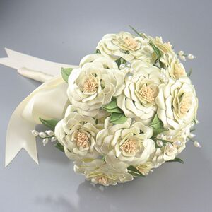 手作りのdiy花嫁のウェディングドレスはバラの手に花の材料を巻いて強力な船乗りがほうれん草を愛しています。