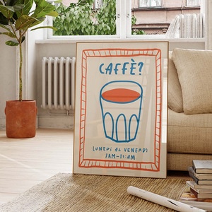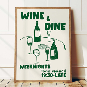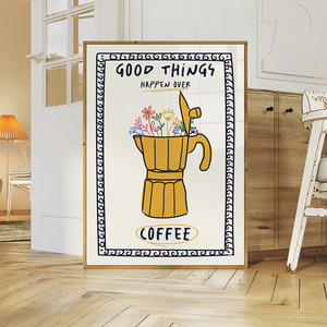 Temu人気イラスト風韓国式ボトルコーヒーパスタキッチンレストランキャンバス装飾画芯ポスター