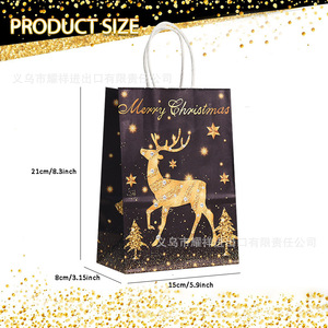 クロスボーダー起爆クリスマス手提げ紙袋箔押しプリント黒クラフト紙袋クリスマスキャンディーギフト袋