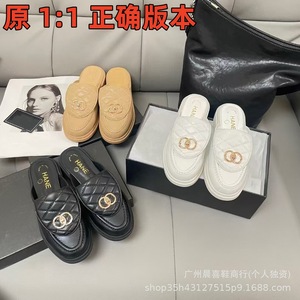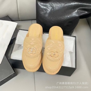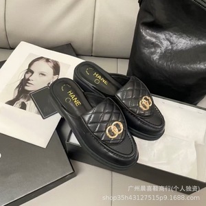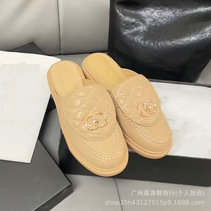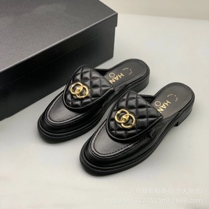 Xiaoxiangfeng ハーフスリッパ女性のための 2025 新しいスタイル本革つま先スリッパバッグバックルローヒールカジュアル菱形快適