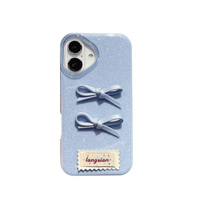 フラッシュ粉立体蝶ネクタイiPhone14/13はアップル16/15promax携帯電話ケースの転倒防止カバーを適用している