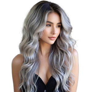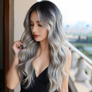 欧米のクロスボーダーの黒い灰色のグラデーションの長い巻き髪のかつらの女性の中で大きい波の化学繊維の頭カバーの工場の現物をかき分けます。