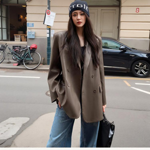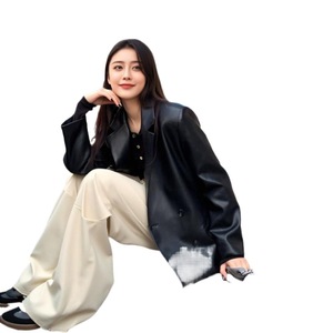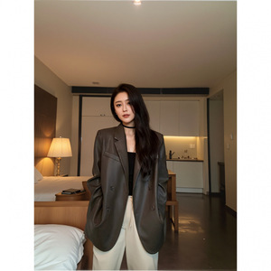 2025春秋新款黑色复古皮衣西装外套女宽松休闲气质高级感上衣女潮