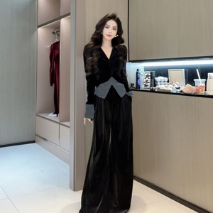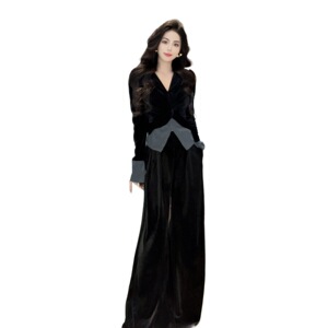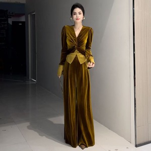 【7685人コレクション】新しいベルベットの雰囲気ファッションスーツのトランペットの袖の上着に腰のズボンを緩めます。