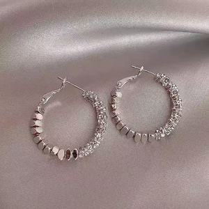 s925 スーパーフラッシュ多用途ブロークンシルバーラージイヤリングライト高級イヤリング誇張サークルラージイヤリングスパークリングファッションイヤリング