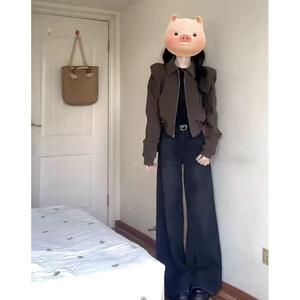 【オリジナル生地、オリジナルの作り方】早秋コートの女性の新しい茶色の短いジャケットの上着の初秋の美拉