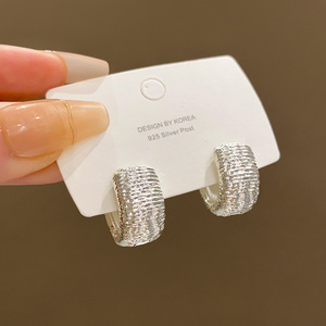 高级感金属纹理U型耳环女冷淡风小众百搭爆款耳扣网红耳饰品