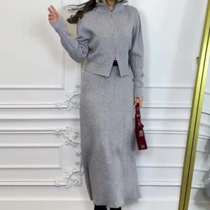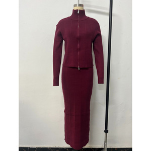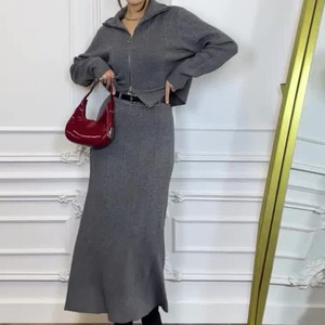 2025春の新型越境欧米の外国貿易の婦人服の純色の長袖のファスナーのコートの半身のスカートのファッションのスーツ