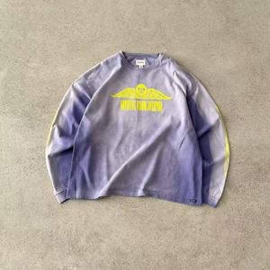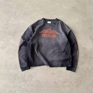 自主美式复古T-shirt火元素水洗款长袖T恤水洗破坏长袖宽松高街男