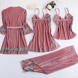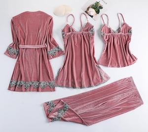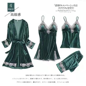 アマのパジャマ欧米のセクシーな下着のセクシーな誘惑レースのパジャマの金のベルベットのパジャマセット
