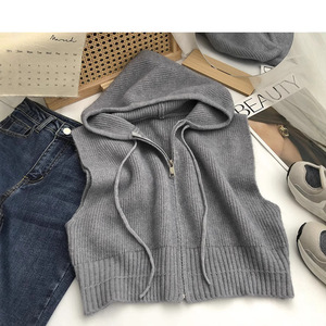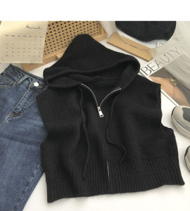 馬甲女の怠惰な風と帽子のニットのデザイン感が小さい秋冬のジッパーのカーディガンのベストの上着