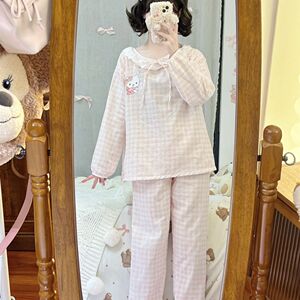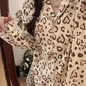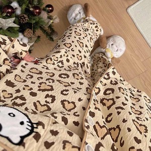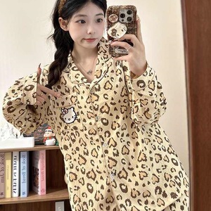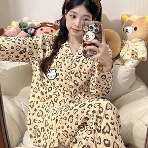 ヒョウ柄ハローキティ猫パジャマ女性春秋新長袖長ズボン日系学生ルームウェア