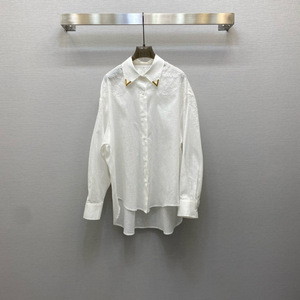 25春の新作フレンチヘビーデューティー刺繍メタルバックル装飾ルーズリネンシャツ