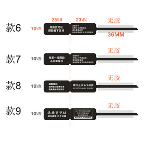 80*10MM テール接着剤なし (500 ステッカー); スタイル 8 (注意事項 + 引き裂いて無効な中国語と英語)