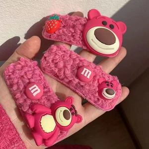 大きなイチゴクマのヘアクリップ、かわいいぬいぐるみ風漫画ヘアピン、女の子らしい甘いシャーククリップ、新しいヘアアクセサリー、ヘアピン