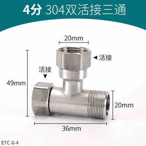 304ステンレス活接三方角弁一進二出水管継手4分内外歯分水管部品