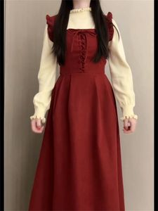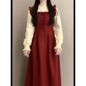 赤いお祝いは年を越えて、ストラップのフリンジのセットを着て腰を収めて痩せているワンピースのセーターを着てシャツを着ます