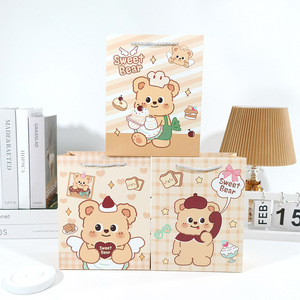 新商品の漫画の贈り物の袋のコックの熊の手提げ袋の六一子供の日のお土産の袋の白いカードの紙の厚いプレゼントの袋