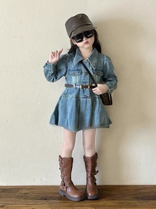 女の子の春秋デニムのスカートの2025春と秋の新型のネットの赤いタイプのワンピースの子供の韓国版のデニムの王女のスカート