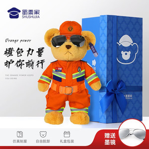 蜀黍家消防士熊人形公仔消防熊テディベアぬいぐるみ救助消防宣伝プレゼント