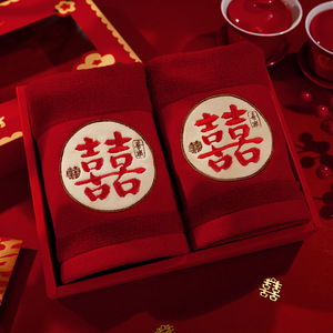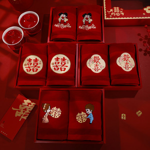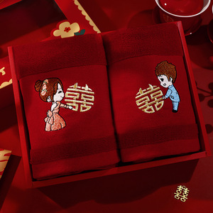 結婚タオルのペアの結婚式のお祝いの赤いタオルの結婚の付き添いのプレゼントの箱のハイエンドの結婚式の用品の大全