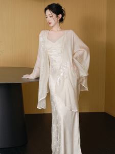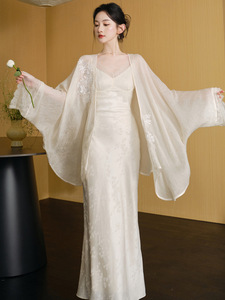 高級サスペンダーフィッシュテールドレスツーピースセット2025春夏新作モーニングローブ婚約ドレスショールで腕をカバー