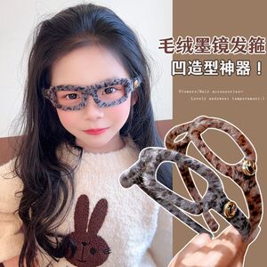 子供のヒョウの紋様のメガネのぬいぐるみのカチューシャ2025秋冬の女の子は頭のカチューシャの女の子の高い頭の髪の束を締めません。