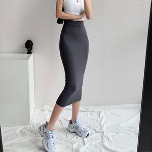欧米のinsのタイトな弾力の半身のスカートの中で長いタイプの女性の2025新型の春夏のギャルの気質はお尻の1歩のスカートを包みます。