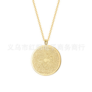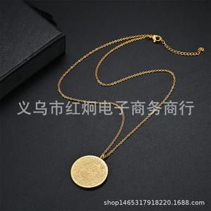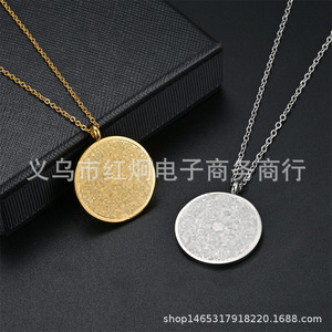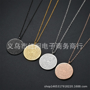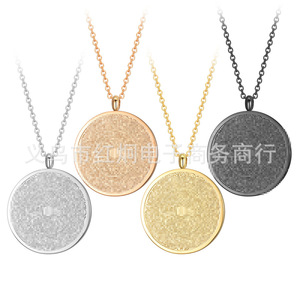国境を越えたエッチング文字ネックレスペンダントステンレス円形ペンダントレリーフ効果チタン鋼ネックレスDモデル