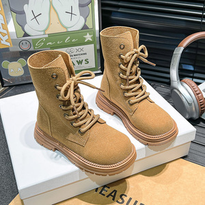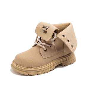 2025春秋の新型のフロストレトロなマーティンは春秋の女の子の男の子の子供の厚い底の襟のショートブーツの大黄を覆います。