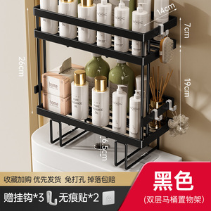 二層黒トイレ収納ラック[フリーフック*3+シームレスステッカー*2]