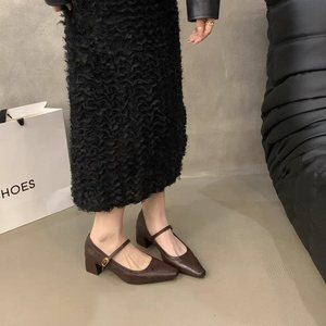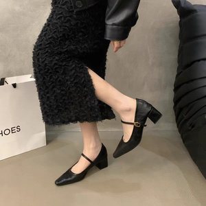 太ヒールの靴と女性の靴の新型はメアリー珍の靴の浅い口の先を合わせて秋冬の晩風の2025フランスに通勤します。