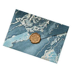オーシャンブルー封筒2枚+白便箋10枚+ファイヤーペイントシール2枚