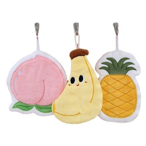フルーツ柄ハンドタオルメーカー卸売 キッチン吊り下げ式ハンドタオル コーラルベルベット吸水性抜群 子供用ハンドタオル 吸水力強化