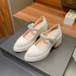 ドリルの厚い底の小さい靴の女性の本革の太さとメアリー珍の靴の2025年の新型の春の浅い口の超ハイヒールの靴
