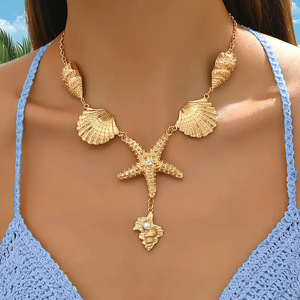 貝殻海螺海星ペンダントネックレス女性ファッション軽豪華鎖鎖ビーチ模造真珠