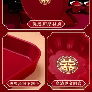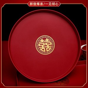 结婚トレー结婚式赤お祝いフルーツプレート结婚披露宴喜字ラウンド敬茶プレート结婚祝い用品スクエア喜糖プレート