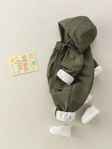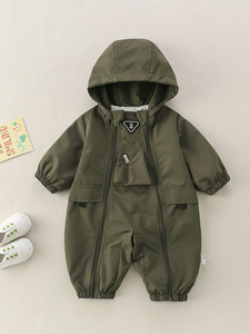 春の男の子の赤ちゃんは帽子をかぶって突撃して外出します。