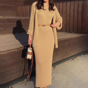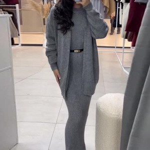 国境を越えたセーターの対外貿易2025秋の新型ファッションカジュアル修身怠惰な風カーディガンのニットワンピースセット