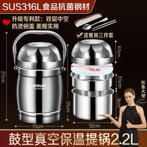 316Lステンレス保温提鍋ドラム型真空弁当箱大容量弁当箱学生サラリーマン弁当箱