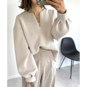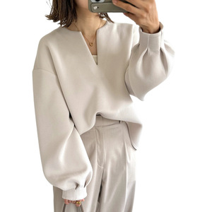 3色楽天好生地2025冬の日系純色のゆるいvネック提灯長袖のセーターの女性