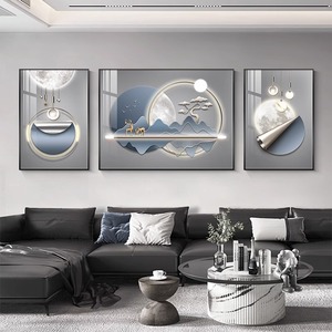 高級感客間装飾画ソファー背景壁掛け画三連画大気現代シンプルで贅沢な壁画