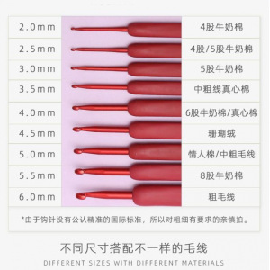 かぎ針の赤い柔らかい柄の針のフルセットのシリカゲルのツールセットの手編みのカバンの滑り止めのセーターの針の包み