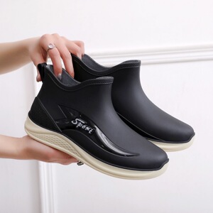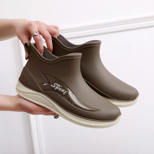 ファッション雨靴女性用滑り止め防水ショートブーツ軽やかで柔らかい底雨靴耐磨耗雨外はベルベットのゴム靴を履いている