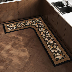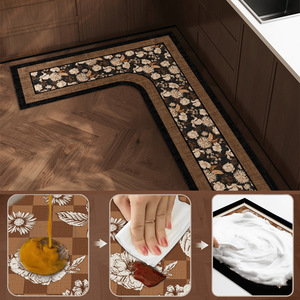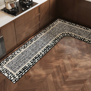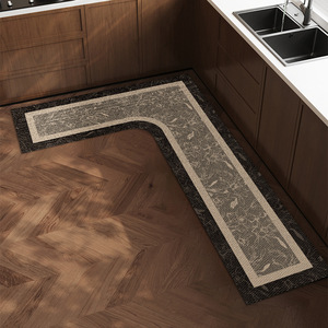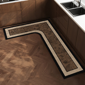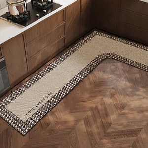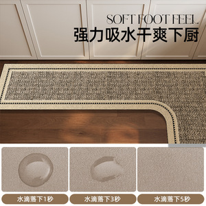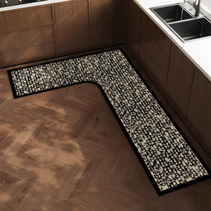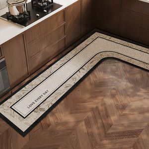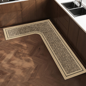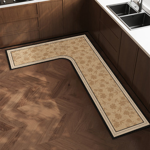 七字型キッチン吸水革マット一体成型足マット滑り止め防油無洗浄汚れ延長カーペット