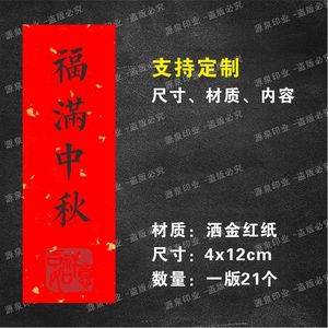 福満中秋節 4x12cm/ステッカー 21 枚、金と赤の紙を散りばめたもの